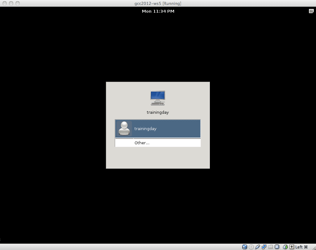 - A screen showing the defined users on this machine is shown. Click on the trainingday user and then enter the password listed below.