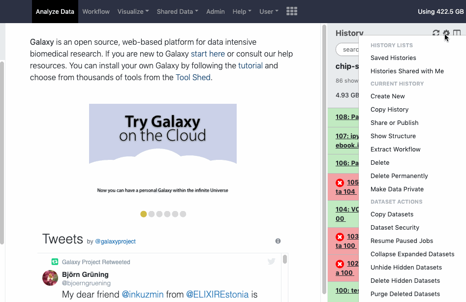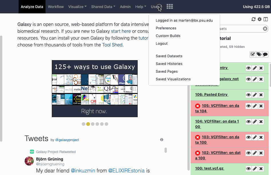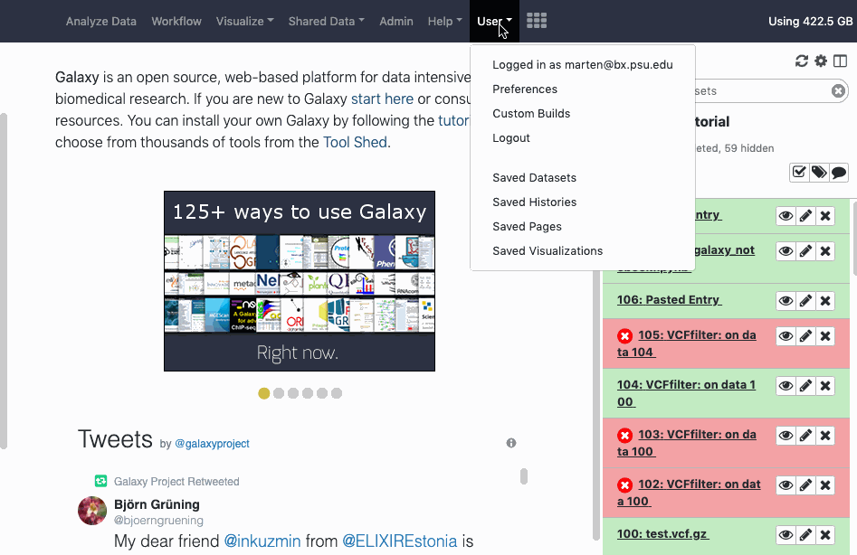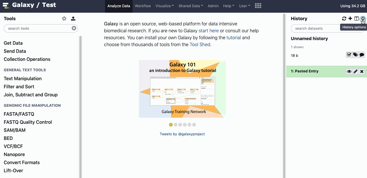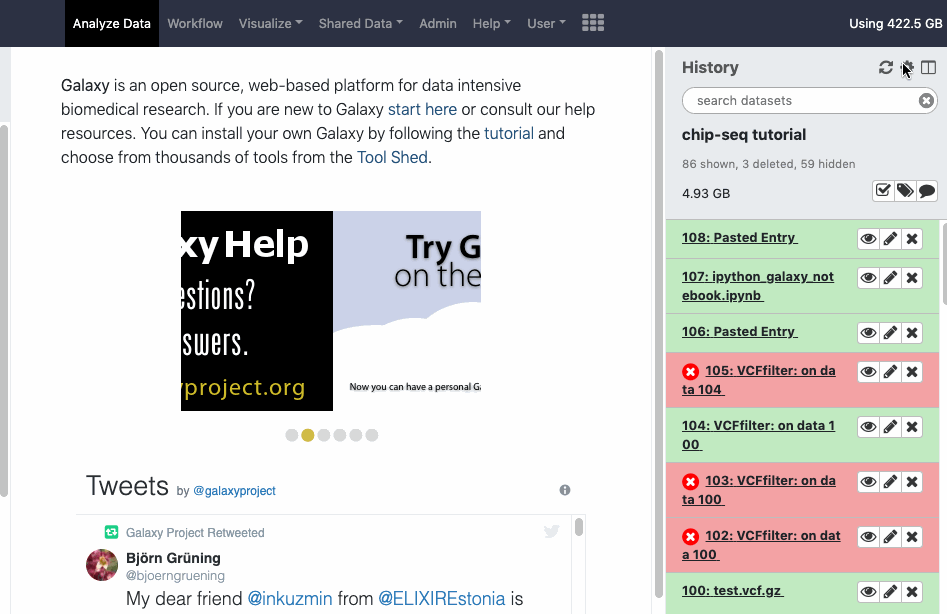 When working at a different Galaxy server, contact the administrators for clarification. Contact information is commonly found on the home page of a Galaxy server and/or included on known public Galaxy Server's directory pages.