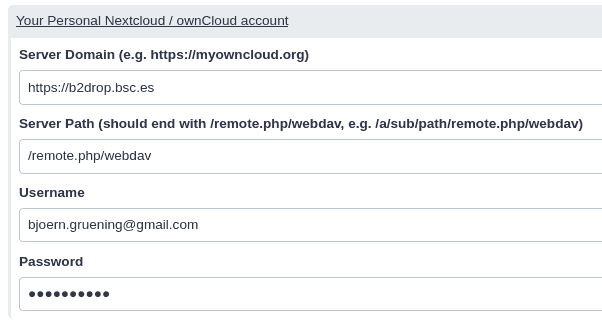 For example, to get access to the B2Drop service of EUDAT, you can configure your settings like: