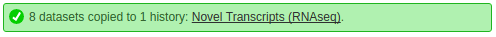 Datasets are uploaded into a new history. Here the history was named Novel transcripts. You can name history as well by clicking on its name. For more info on histories see this tutorial. |